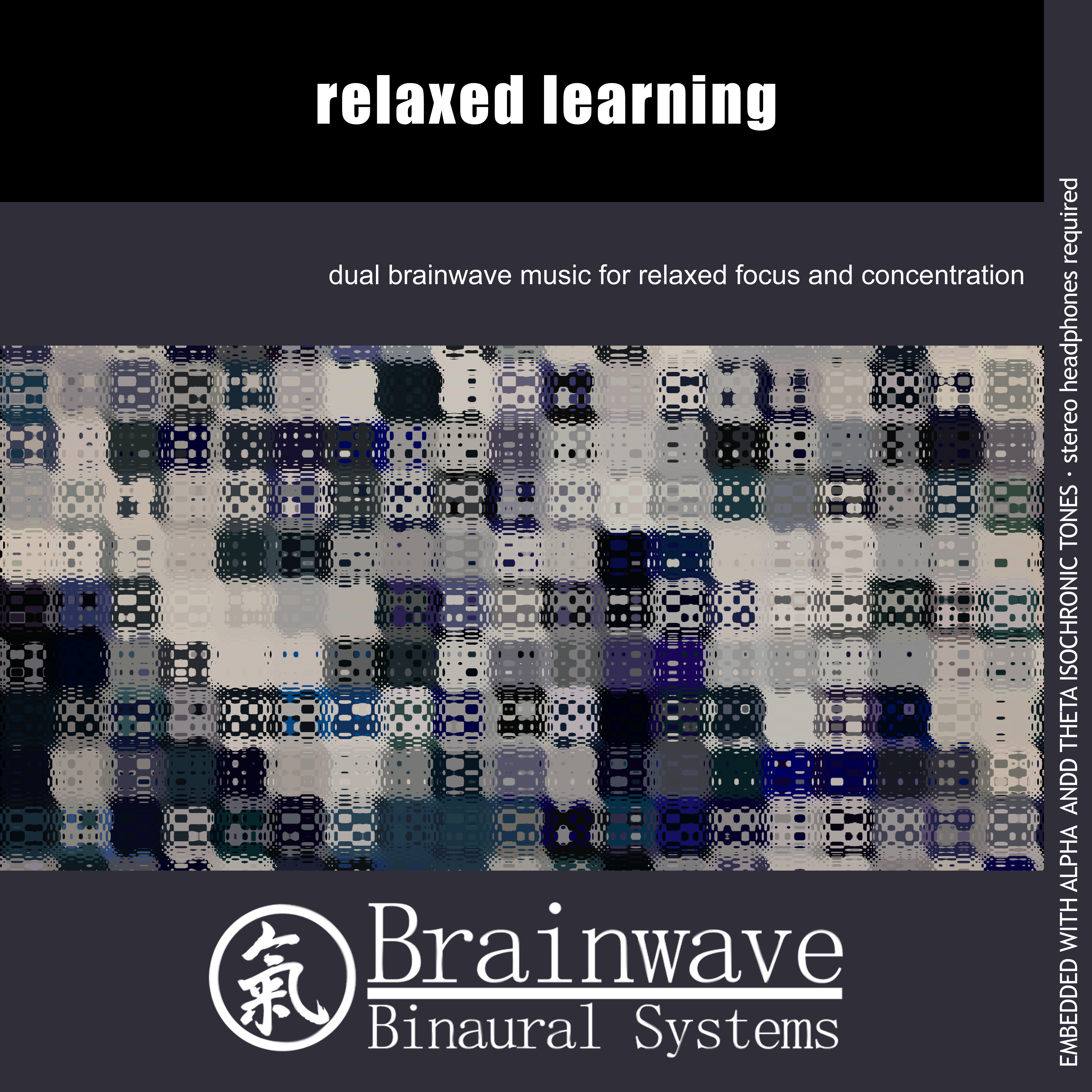 The Relaxed Learning album has 30 minutes of dual brainwave music embedded with Alpha and Theta Isochronic Tones, stimulating both brain hemispheres separately. Theta Tones are sent to the left ear (right brain hemisphere) while Alpha and Theta Tones are sent to te right ear (left brain hemisphere), slightly stimulating the left brain that is associated with logic, facts, reality and words.