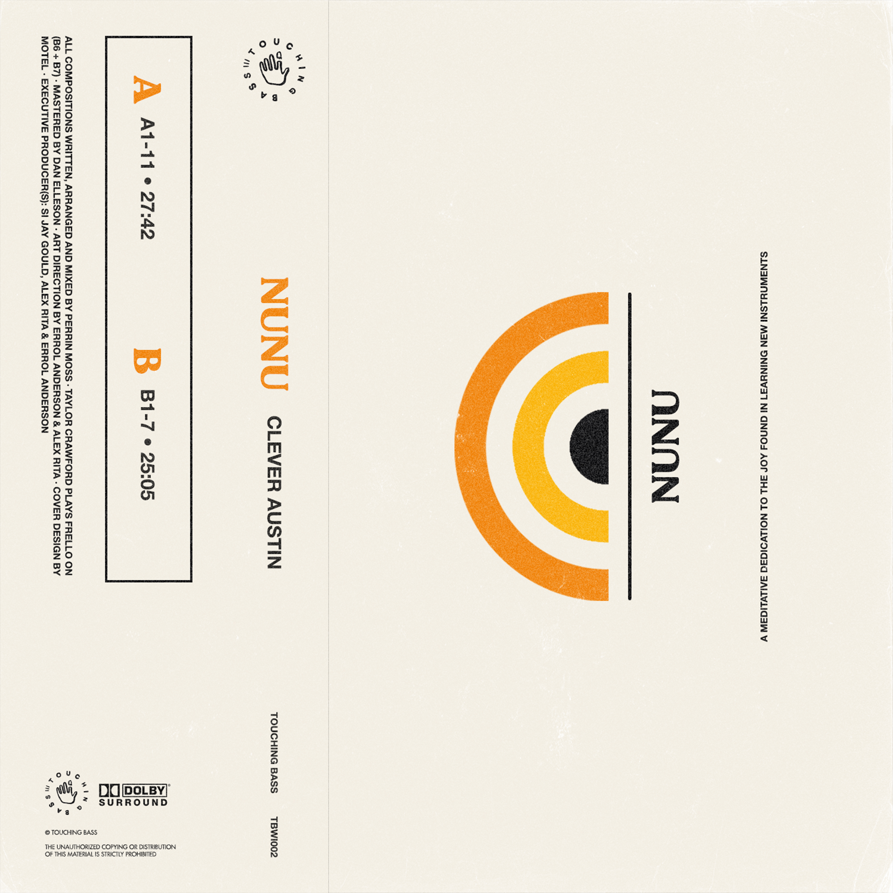All compositions written, arranged and mixed by Perrin Moss; Taylor Crawford plays frello on (B6 + B7)